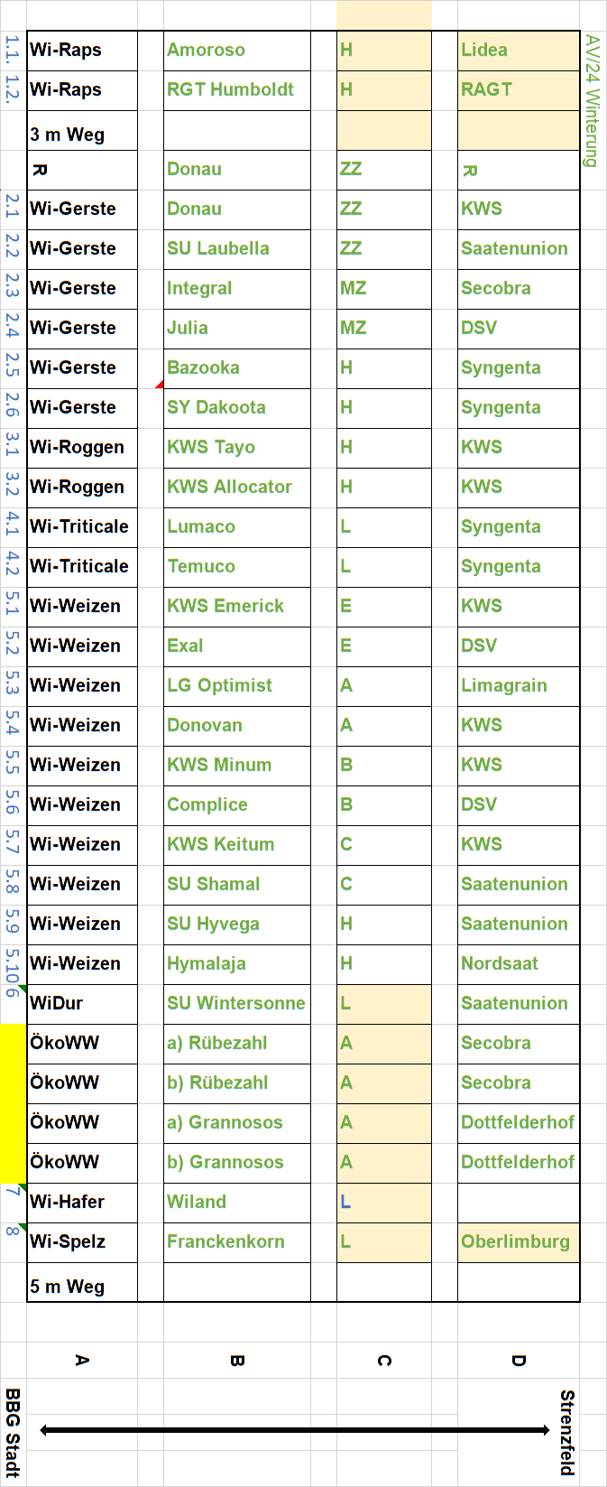 Artenvergleich der Winterungen am Standort "Strenzfeld" im Erntejahr 2024