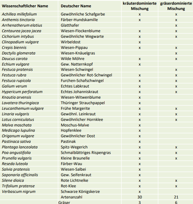- zwei Mischungen aus gebietseigenem, zertifizierten Wildpflanzensaatgut: