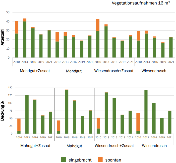 - Artenzahl: Mahdgutvariante profitiert von der Zusaat