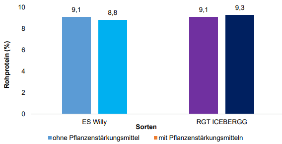 | Beim Rohproteingehalt konnte der Einfluss des Pflanzenstärkungsmittels nicht nachgewiesen werden. | |