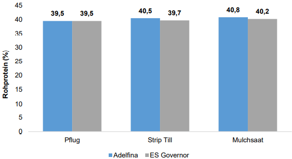 | Einfluss von Bodenbearbeitungs- bzw. Aussaatverfahren auf den Rohproteingehalt bei Sojabohnen 2021 | |