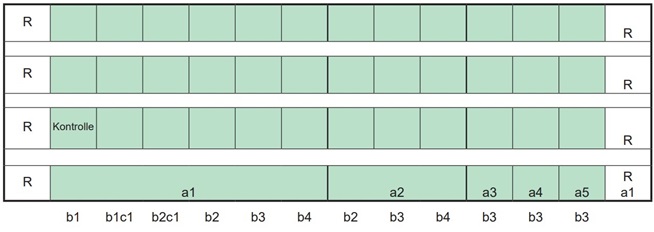 | b1 b2 b3 b4 | ohne Düngung 50kg N/ha 100kg N/ha 150kg N/ha |