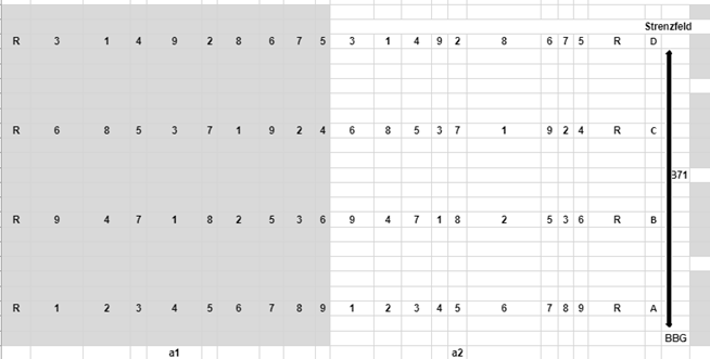 | Art | stdj 1 | stdj 2 | stdj 3 | NU agar 4 | BBG Nord 5 | LLG 6 | MBA 7 | KI 8 | Null-Variante 9 |