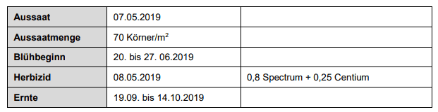 Versuch 1.10 im Erntejahr 2019