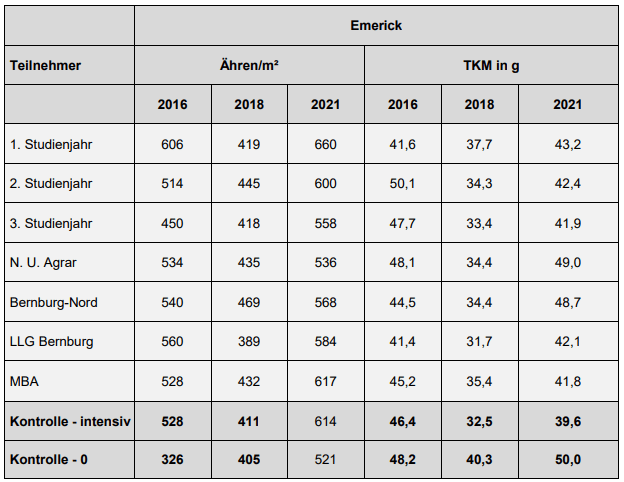 | Deckungsbeiträge im Weizenanbauvergleich - Sorte Emerick: | |||