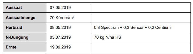Erträge bei Sojabohnen 2019 in Abhängigkeit von Bakterienpräparaten und N-Düngung (Durchschnitt von drei Sorten)