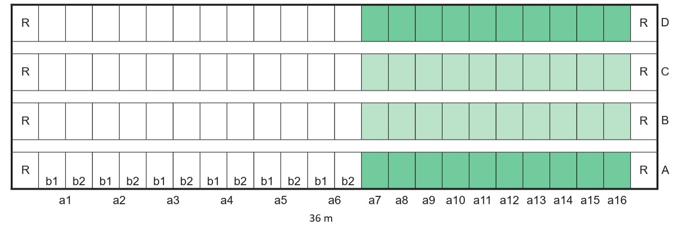 | Düngung | b1 1. Gabe: 60 kg N/ha 2. Gabe: 60 kg N/ha 3. Gabe: 40 kg N/ha b2 1. Gabe: 60 kg N/ha 2. Gabe: 40 kg N/ha |