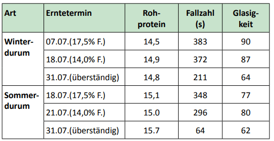 | Prüfung der Qualität bei Winterdurum - Erntezeitpunkte | |