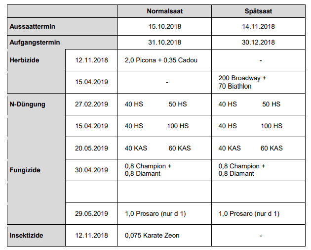 | Erträge bei Winterdurum 2019 nach Versuchsvarianten | |