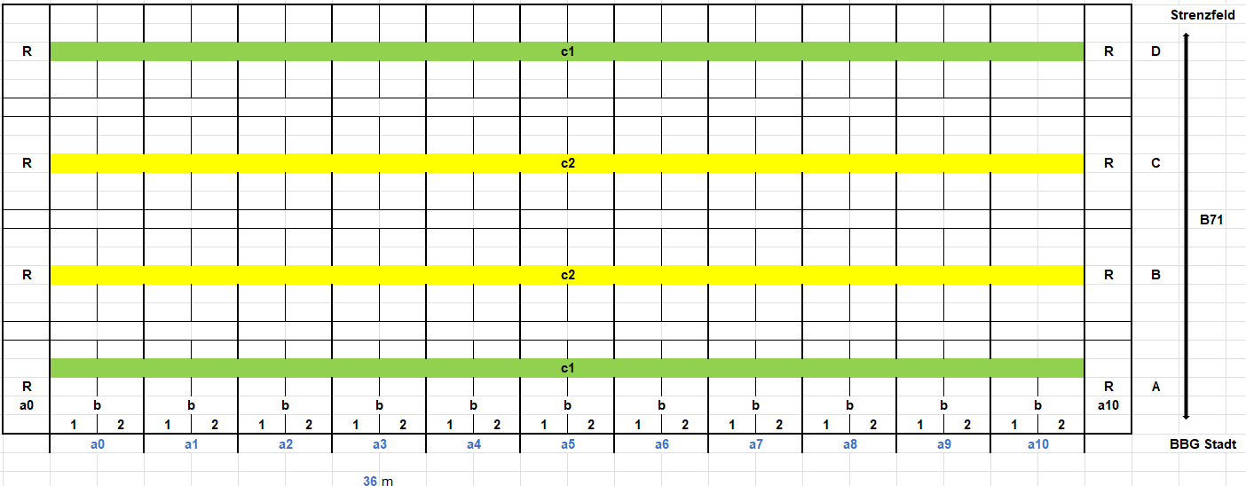 | Düngung | b1 1. Gabe: 40 kg N/ha 2. Gabe: 40 kg N/ha 3. Gabe: 40 kg N/ha b2 1. Gabe: 80 kg N/ha 2. Gabe: 80 kg N/ha 3. Gabe: 40 kg N/ha | |