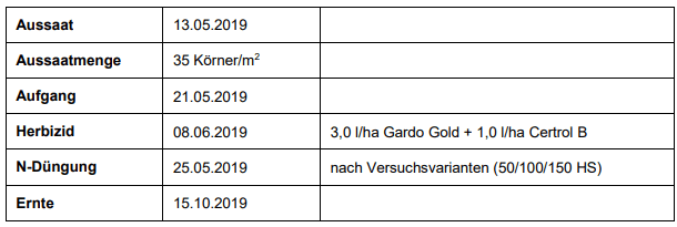 | Gegenüber dem mehrjährigen Durchschnitt war der Ertrag deutlich geringer. Die Steigerung der N-Düngung brachte keinen signifikanten Ertragseinfluss. Untersucht wurden die Proben im Hinblick auf den Rohproteingehalt. Die Werte lagen im Bereich des mehrjährigen Durchschnitts. Bemerkenswert ist hier besonders, dass auch beim Rohproteingehalt kein signifikanter Unterschied durch die N-Düngung nachzuweisen war. | |