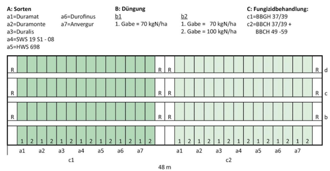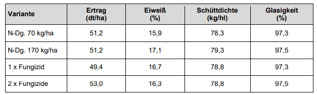 | Erträge und Qualitäten bei Sommerdurum 2019 nach Versuchsvarianten | |