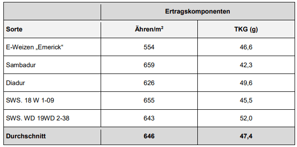 | Bestandesdichten und Tausendkorngewichte bei Winterdurum nach Sorten | |
