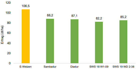 | Erträge bei Winterdurum 2021 nach Sorten | |