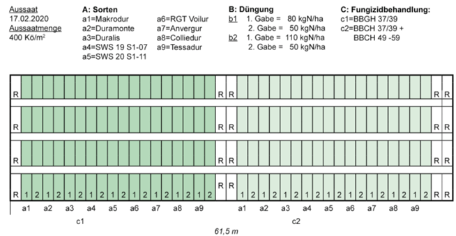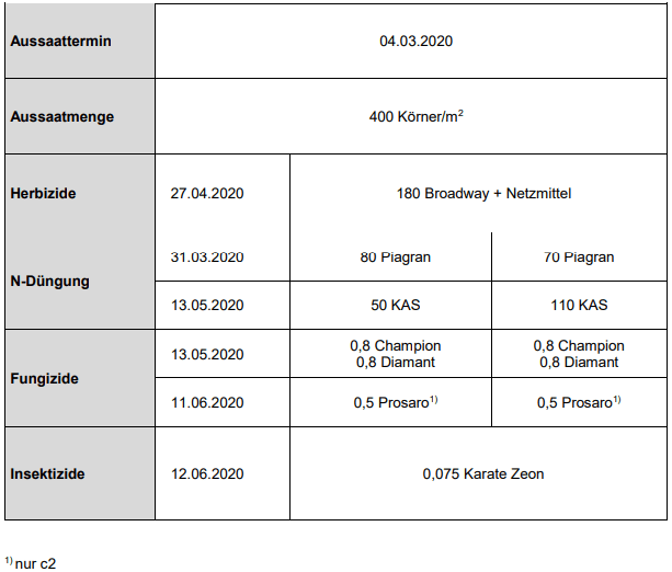 | Erträge und Qualitäten bei Sommerdurum 2020 nach Versuchsvarianten | |