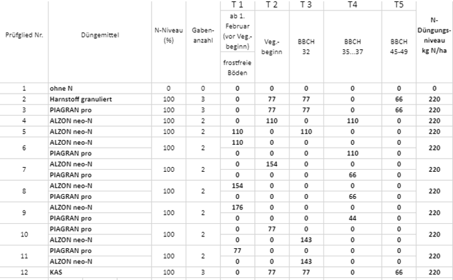 | Schwefeldünung | 125 kg/ha Kieserit |