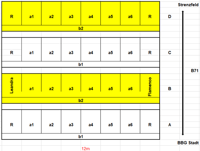 | Sorten | a1 a2 a3 a4 a5 a6 | Leandra Amidala KWS Jessie Lexy Firefoxx Planet |