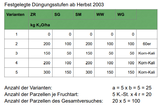 Auswirkung variierter Kalidüngung auf Trockentoleranz, Ertrag und Qualität der in einer Fruchtfolge angebauten Fruchtarten sowie auf die K-Dynamik im Boden bei konventioneller Bodenbearbeitung.