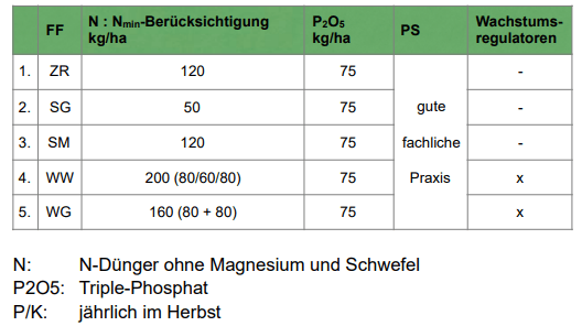 Düngung und Pflanzenschutz (Richtwerte)